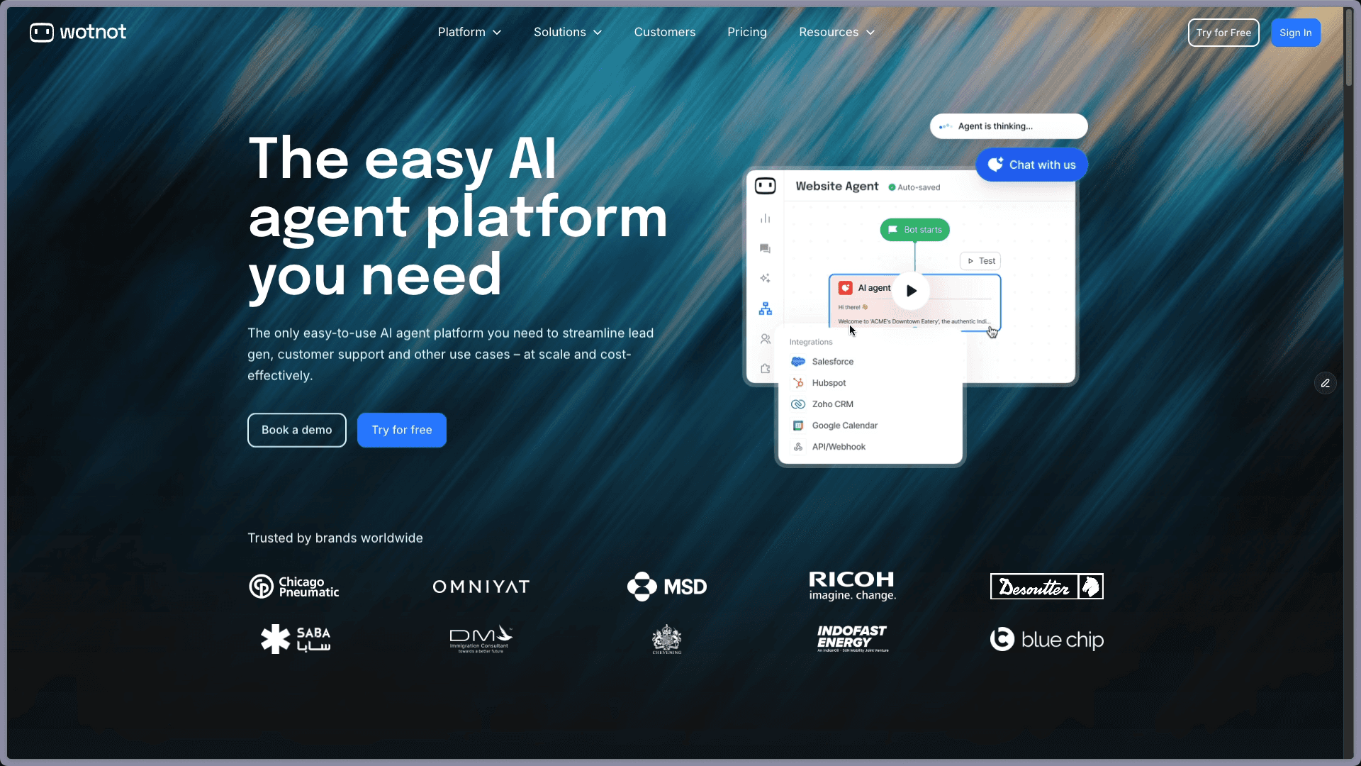 For example, when visitors land on WotNot’s website, they’re alerted with a one-liner popup message via an intuitive sound tone to notify them of the bot. The message is crisp and summarizes the challenges a business would want to solve with WotNot.