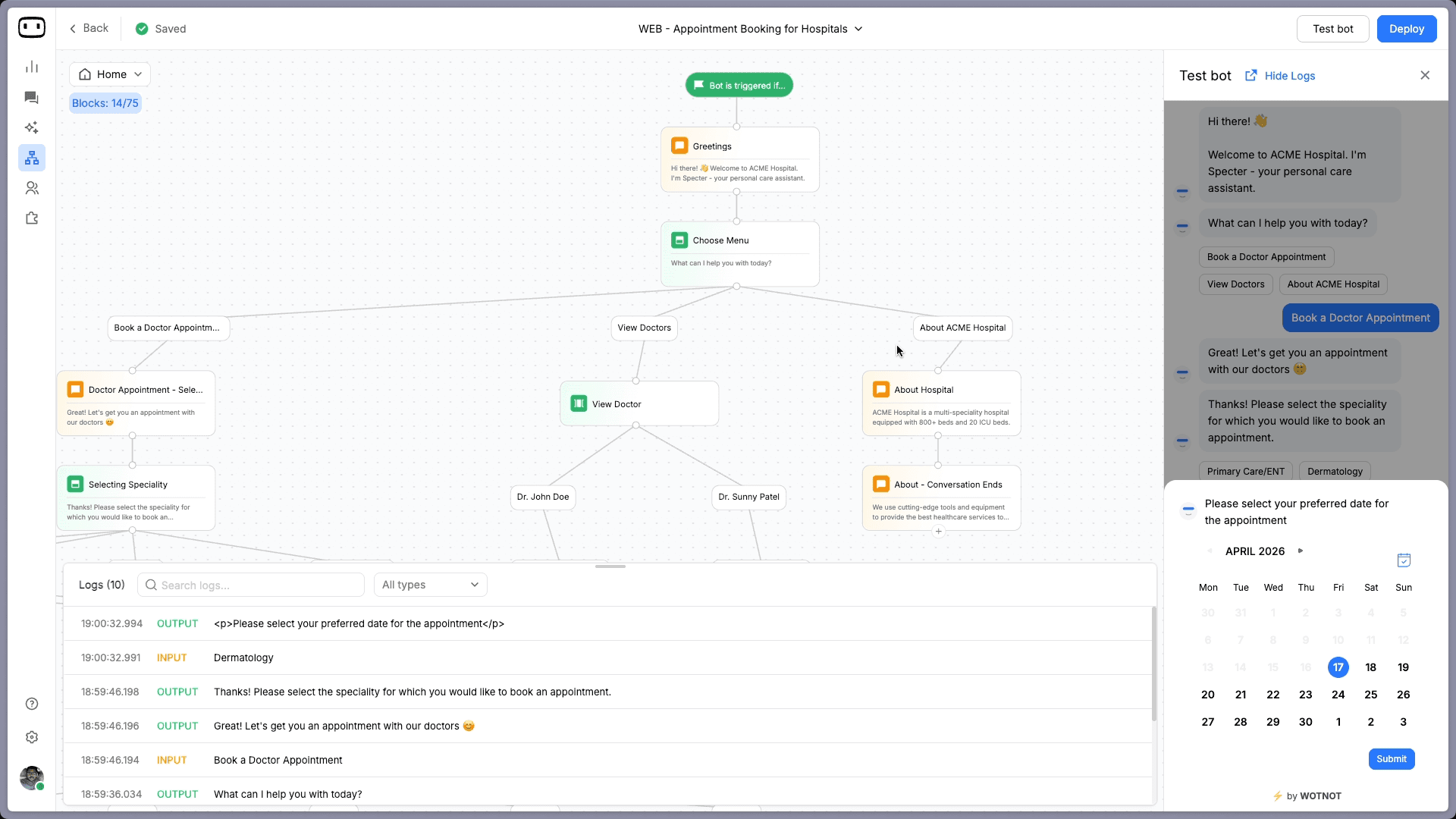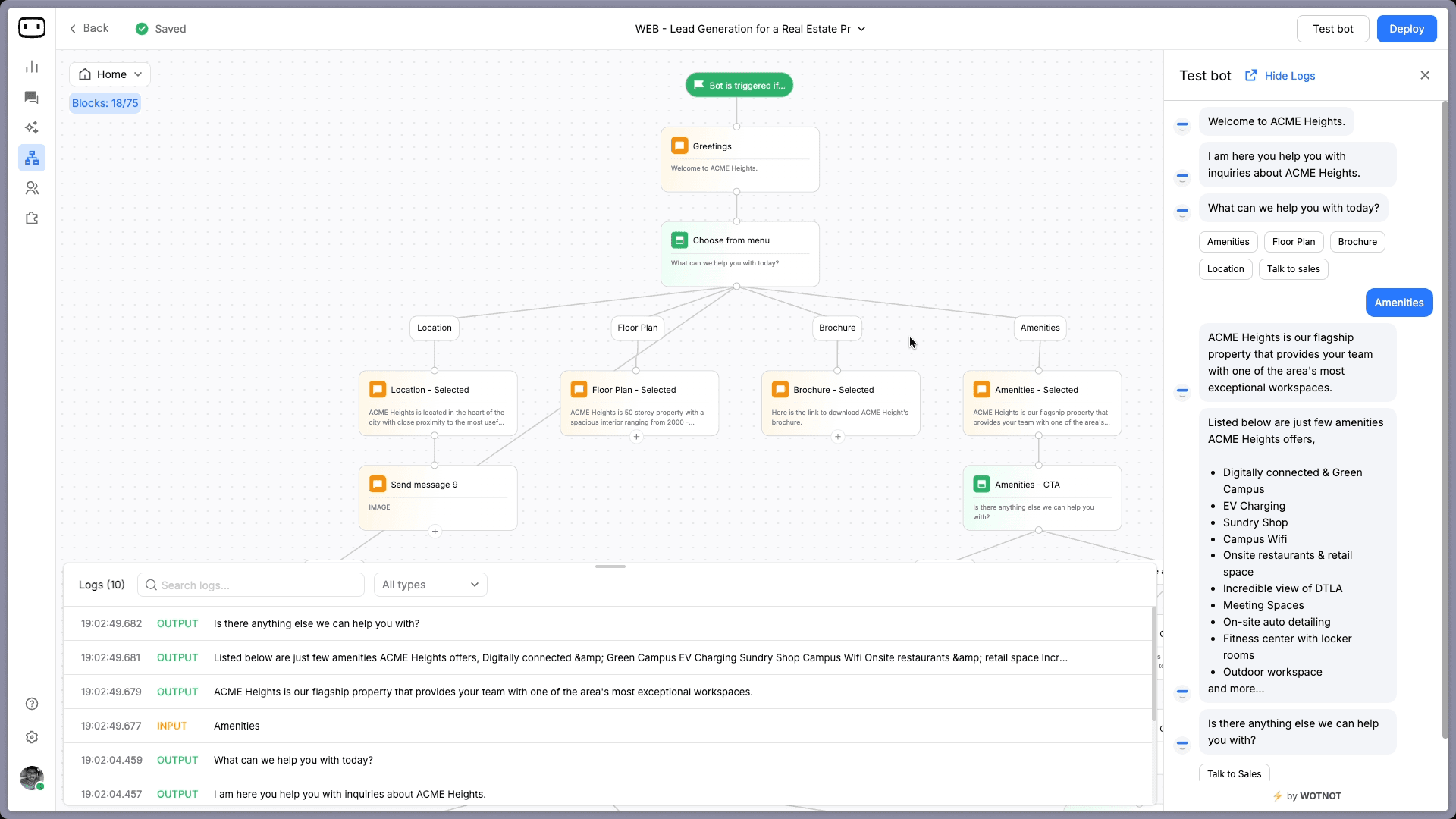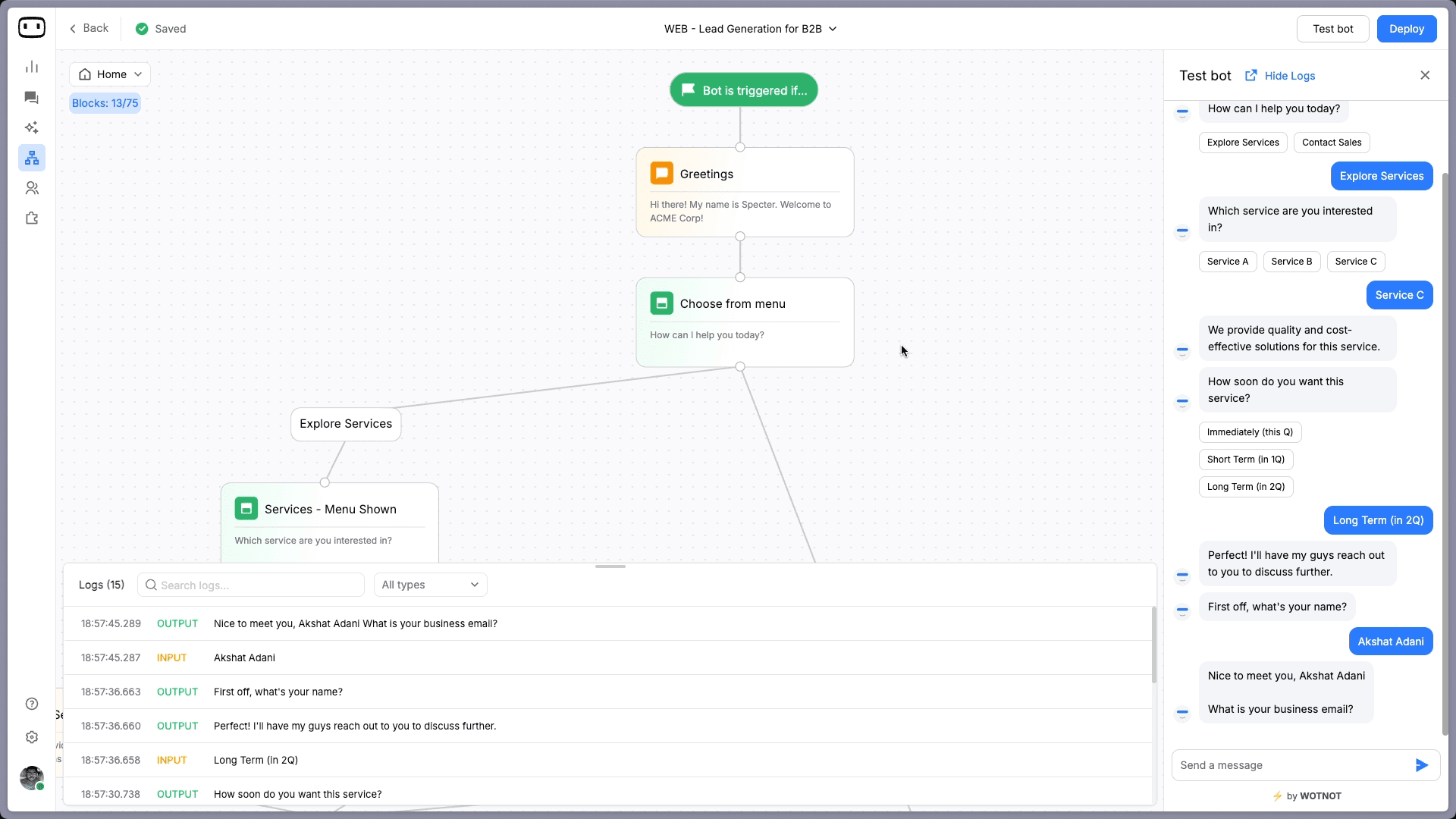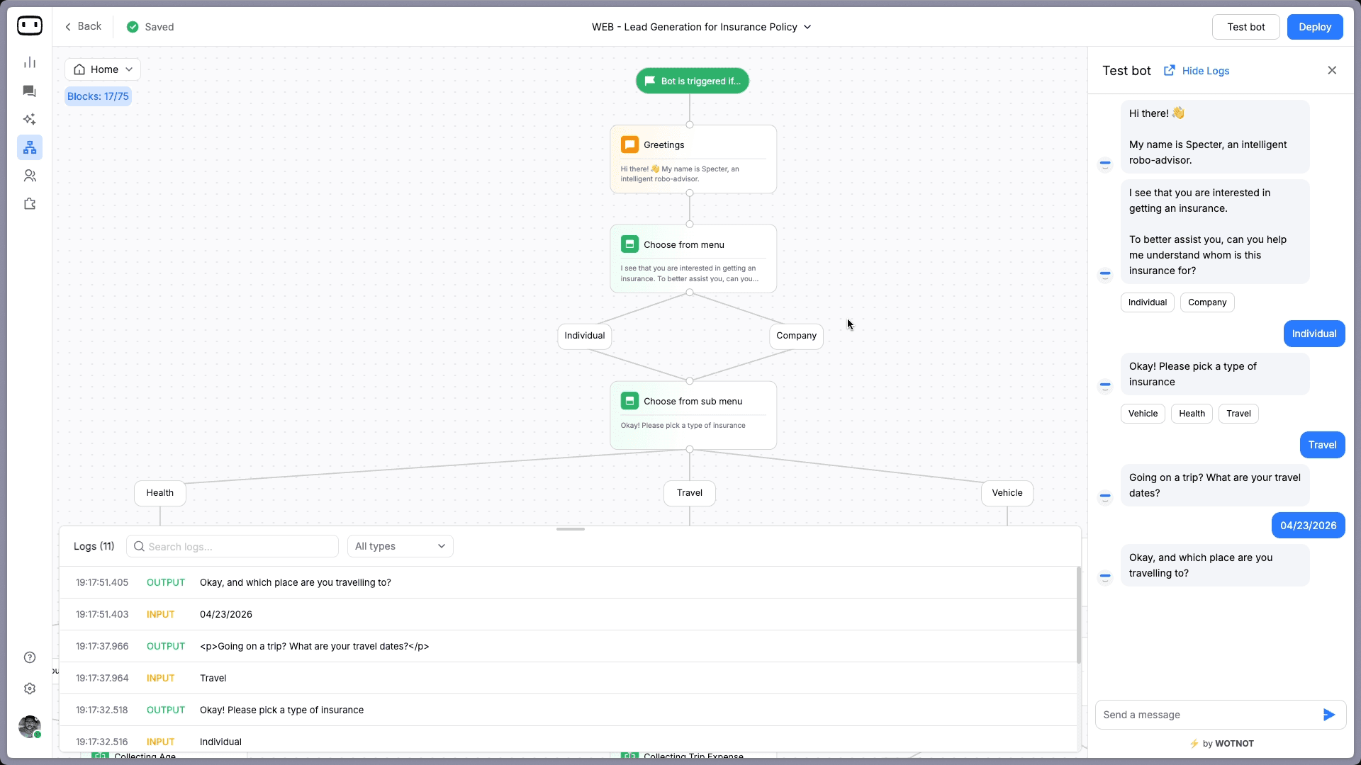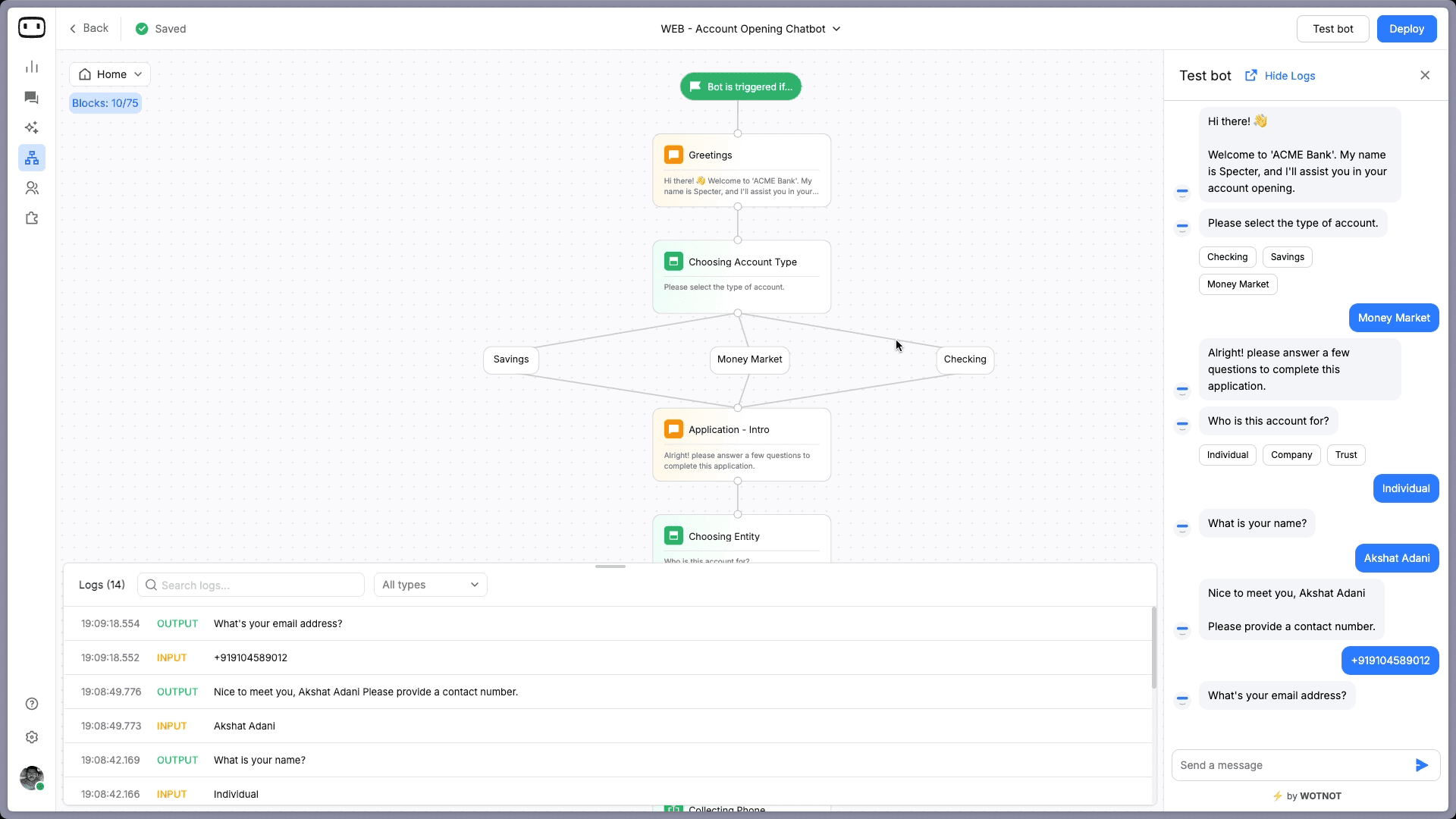Build AI chatbots and agents with WotNot and see how easily they work in real conversations.