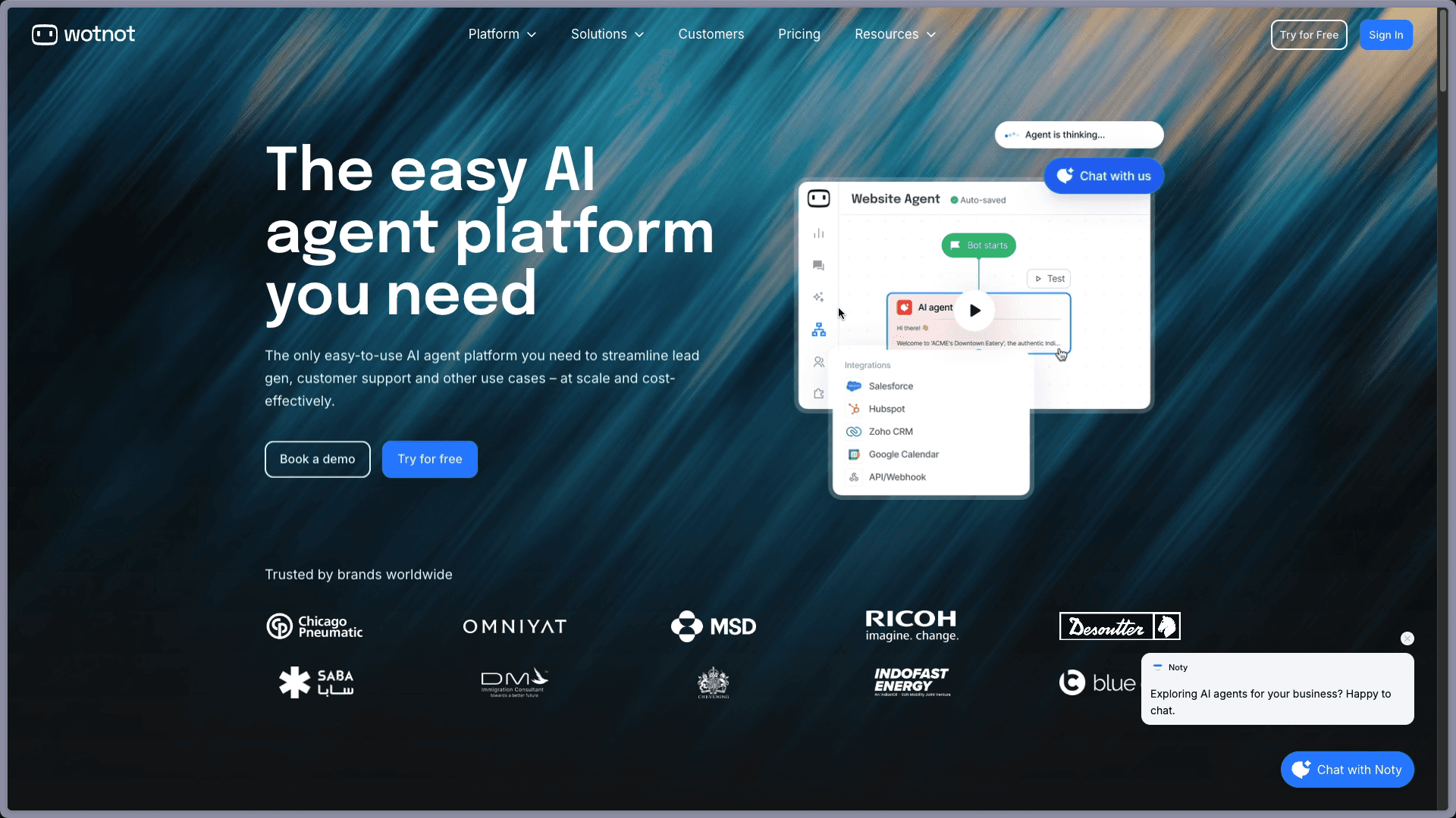 Build AI chatbots and agents with WotNot and see how easily they work in real conversations.