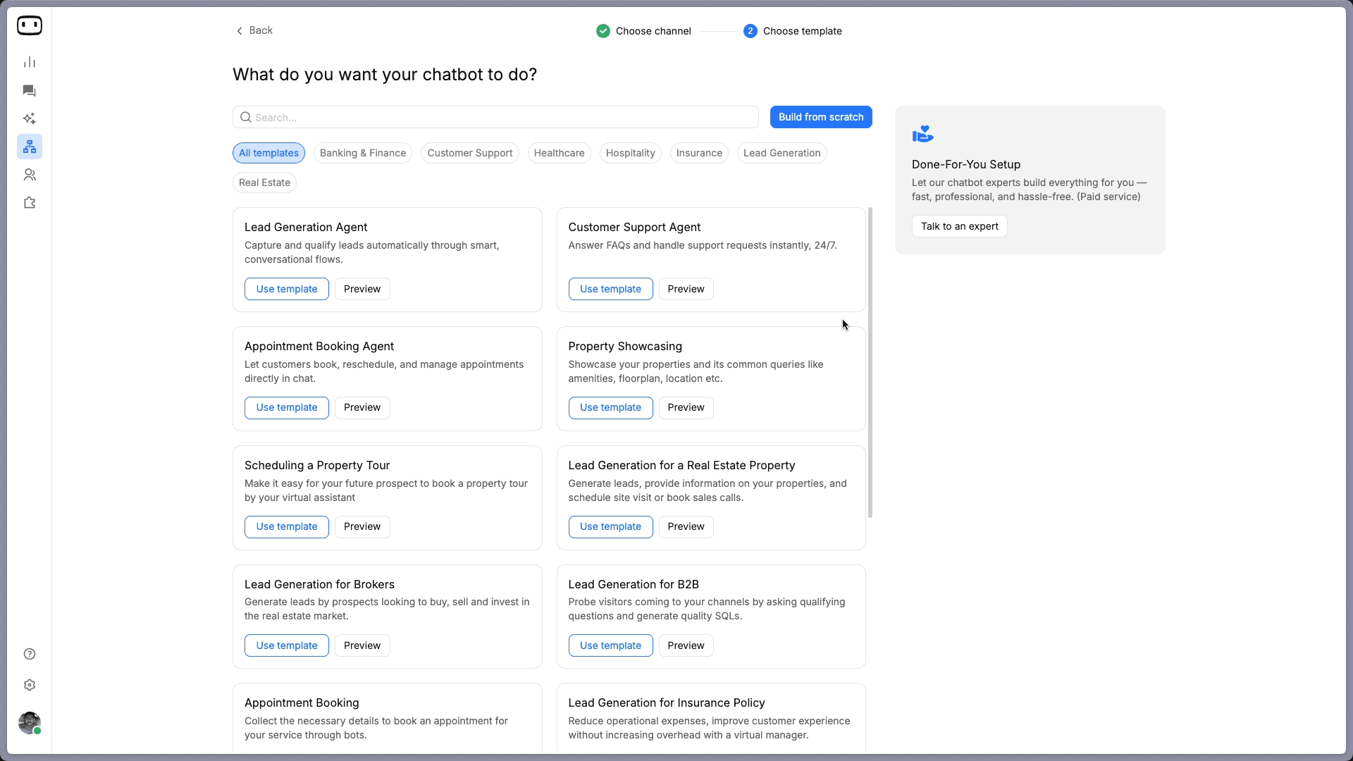 Templates are faster. Building from scratch gives you more control, and it is the path you will take if you want an AI-powered chatbot.
