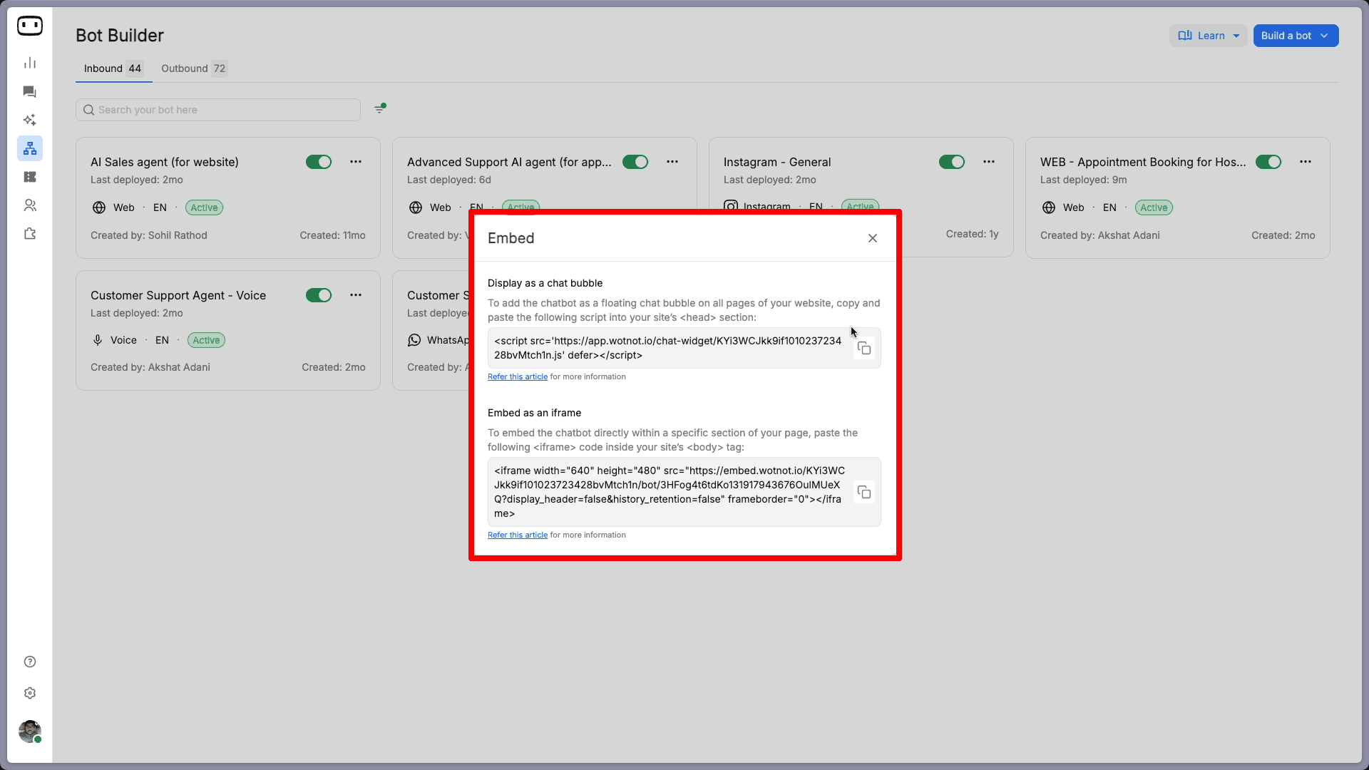 Build AI chatbots and agents with WotNot and see how easily they work in real conversations.