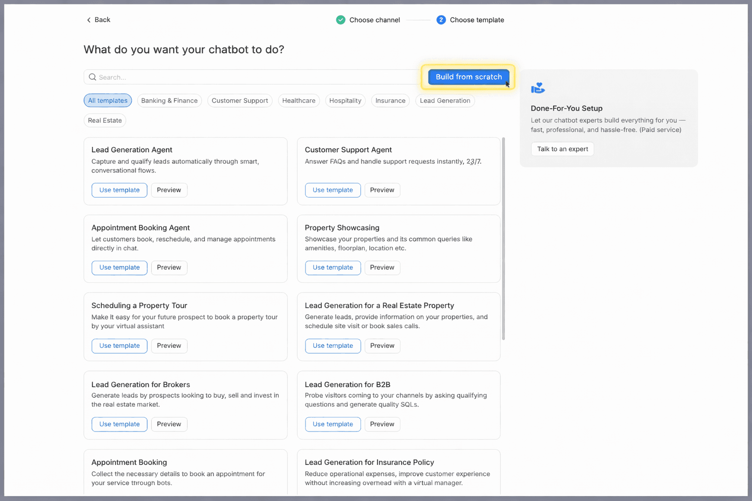 After selecting your channel, you arrive at the decision that shapes everything: use a template or build from scratch.