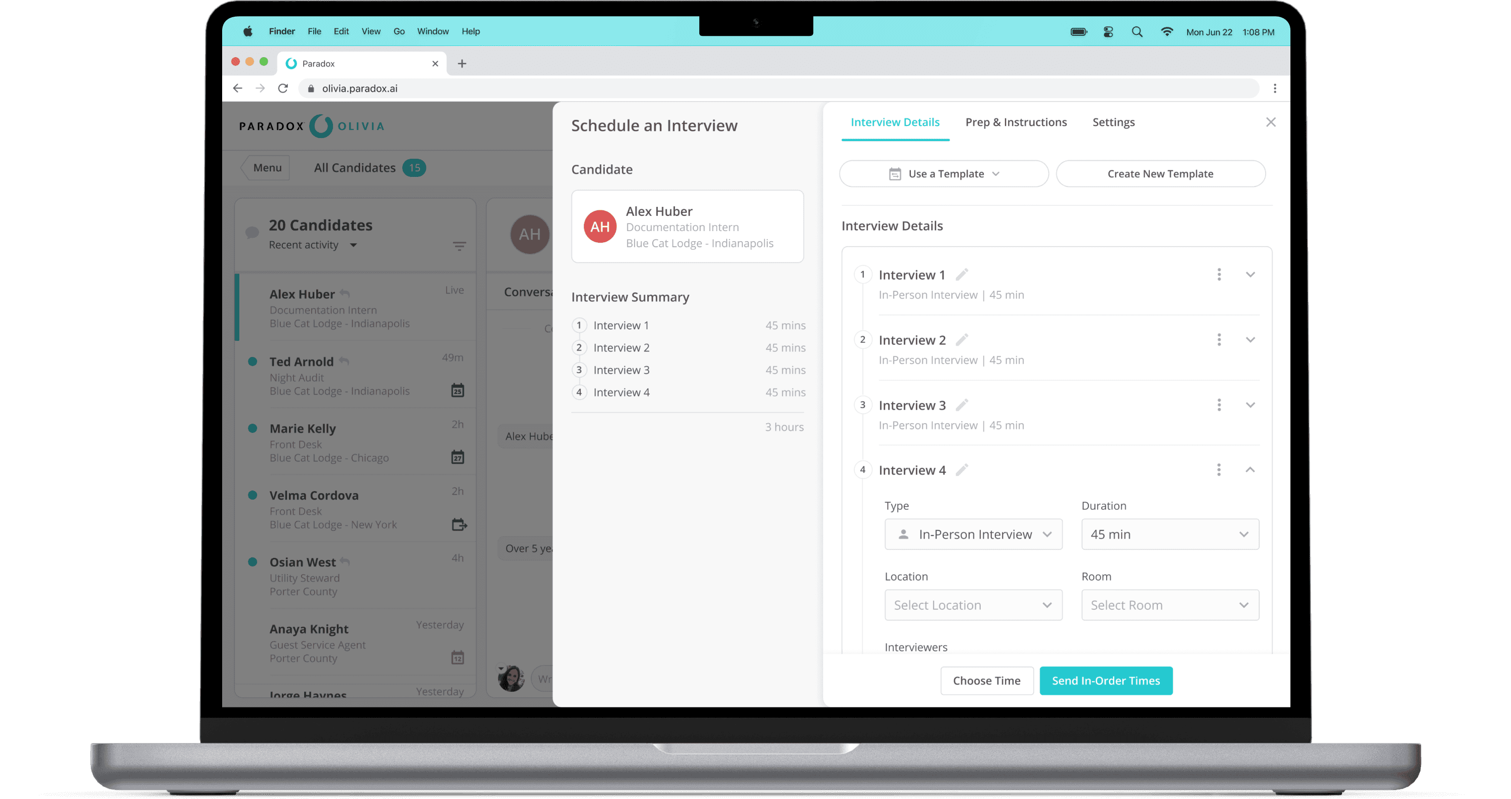 Where Paradox really separates itself is in the candidate experience. Olivia feels closer to texting a real coordinator.