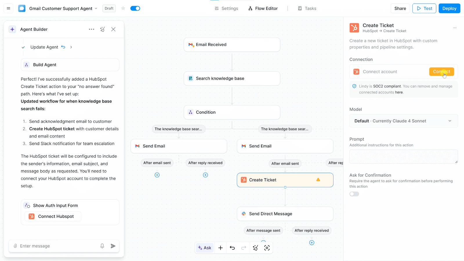 Lindy relies heavily on natural language instructions. You don’t have to even create a flow.