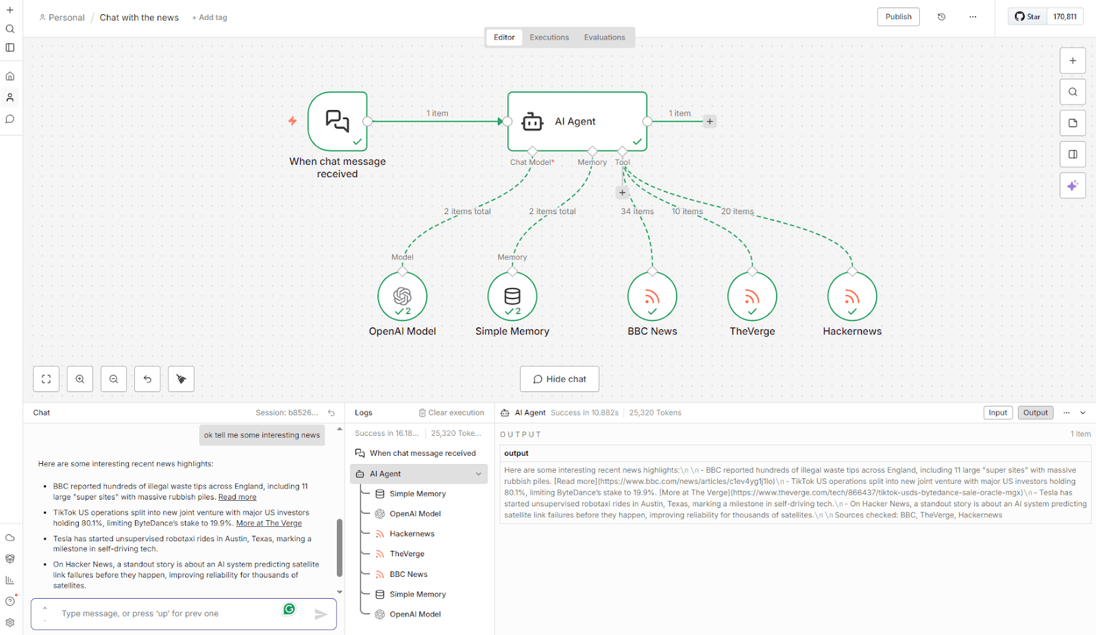 Here you will find yourself designing event-driven workflows. Kinda like this AI agent for news, which is created in n8n.