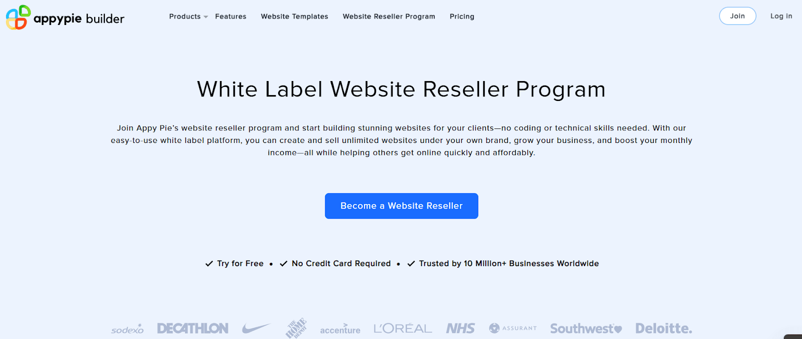 Appy Pie offers a powerful Website Reseller Program designed for agencies, freelancers, and entrepreneurs who want to sell websites under their own brand without building everything from scratch. The program enables you to resell websites using Appy Pie’s no-code technology while maintaining full control over branding, pricing, and client relationships.