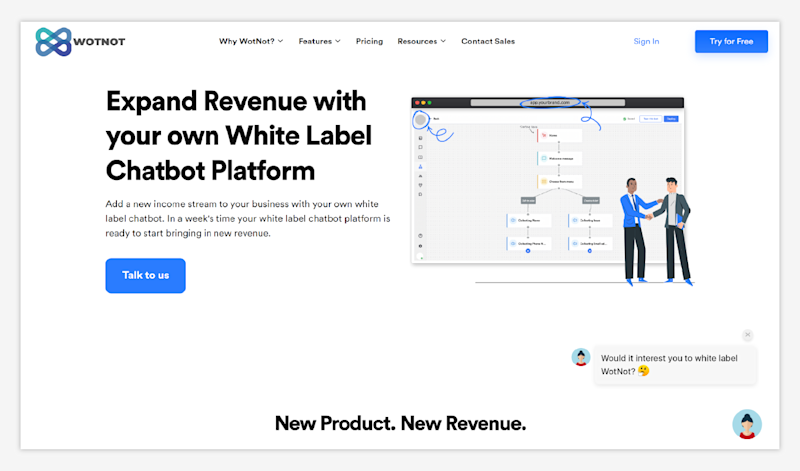 WotNot is an exceptional SMS marketing white label tool that you can purchase and resell to your customers. With easy customizations and flexible pricing, you can even use it to offer SMS marketing services to your customers.